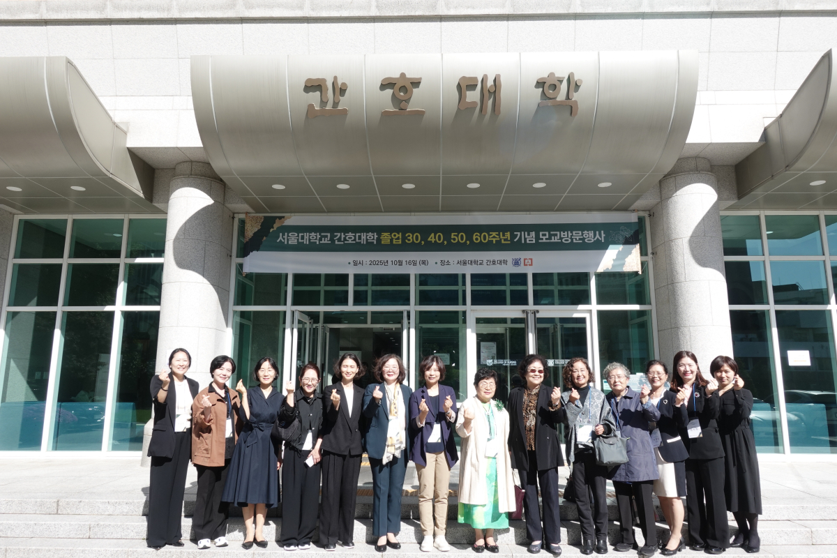 간호대학 졸업 30, 40, 50, 60주년 기념 모교방문행사가 2025년 10월 16일에 진행되었다. 이번 행사는 60주년(65졸업), 50주년(75졸업), 40주년(85졸업), 30주년(95졸업) 졸업동문과 동창회 임원, 간호대학 교수, 그리고 명예교수 등이 참석하였다.
