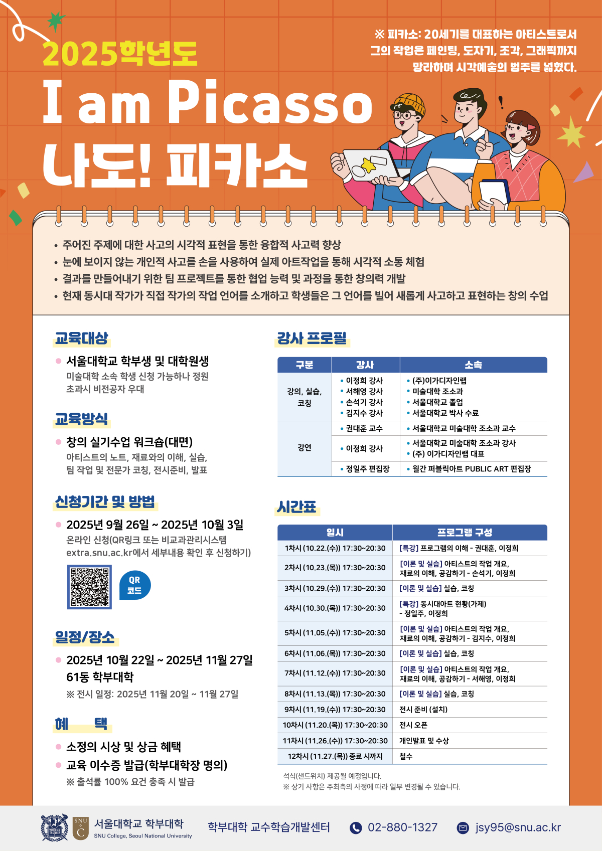 - 일정/장소: 2025. 10. 22.(수) ~ 11. 27.(목)/학부대학(관악캠퍼스)