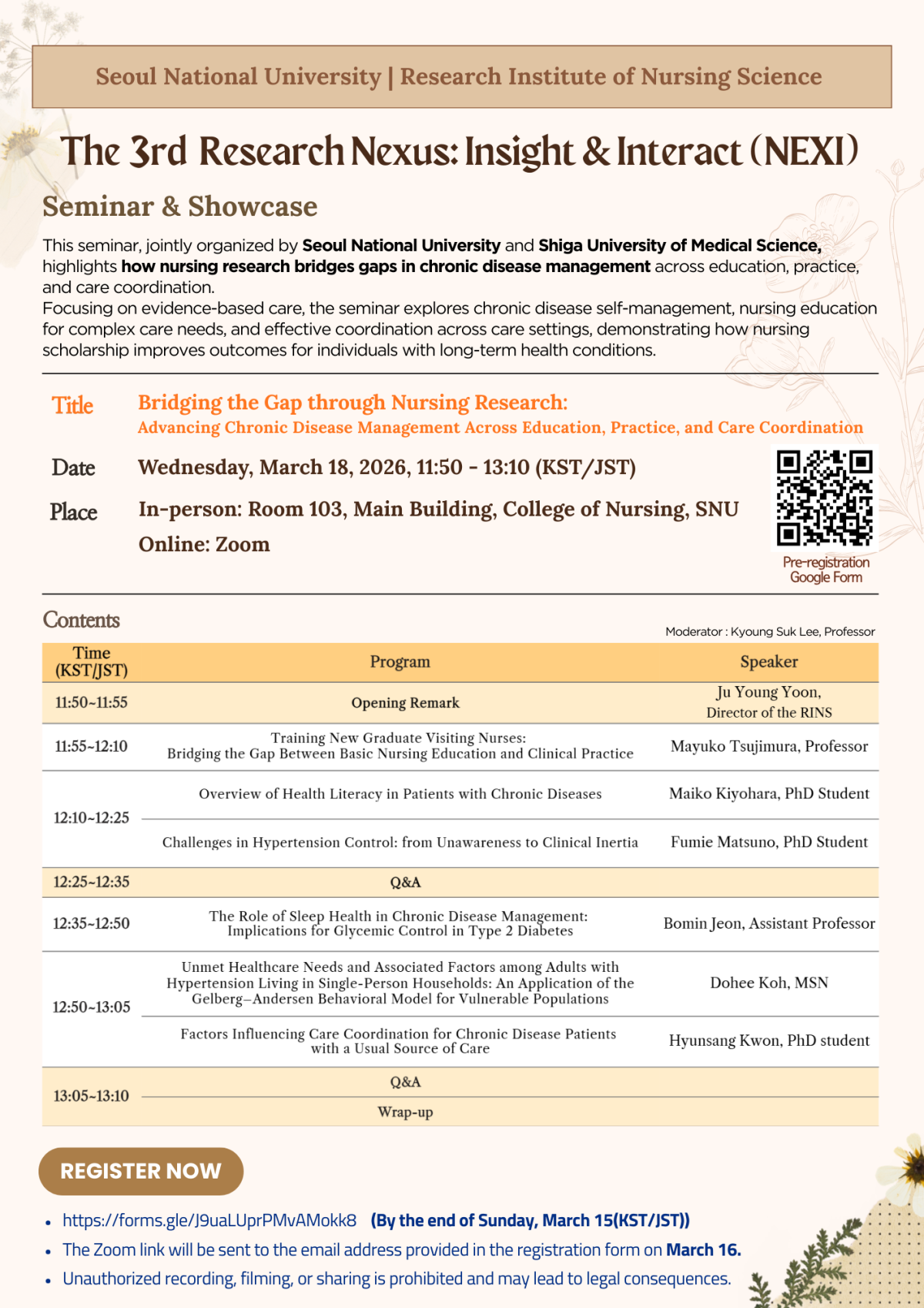 - 대면 장소: 서울대학교 간호대학 본관 103호