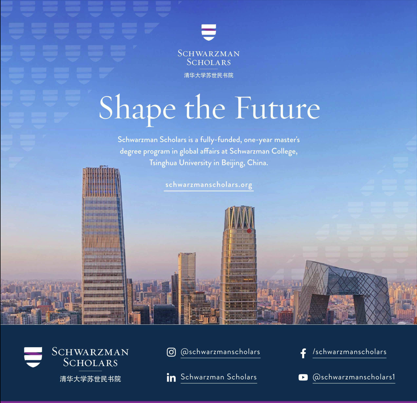 서울대학교 국제처에서 중국 칭화(清华)대학의 Schwarzman Scholars 석사과정 장학 프로그램을 아래와 같이 안내하오니, 관심 있는 학생 여러분의 많은 지원 바랍니다.